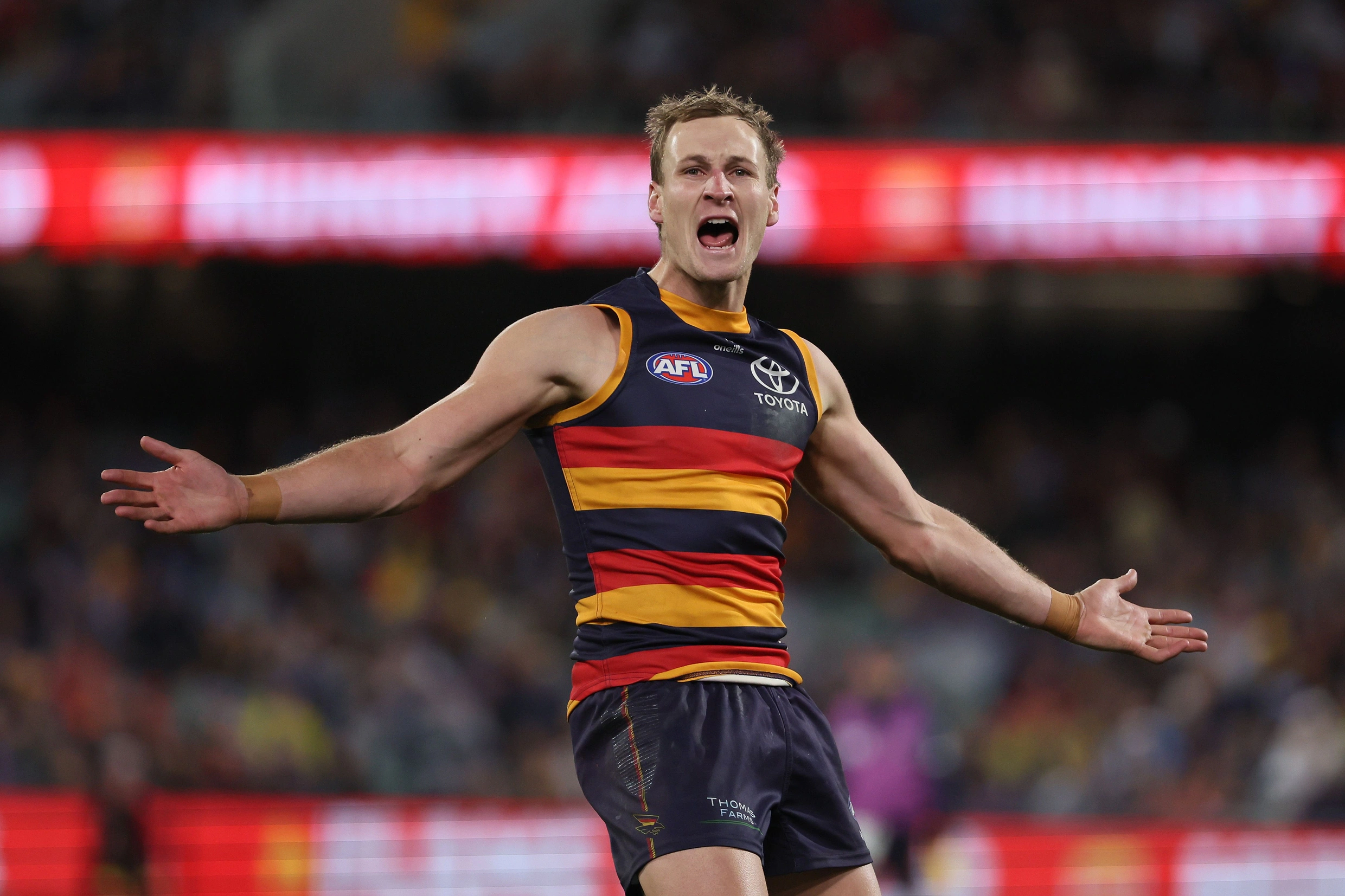 Goals to Riley Thilthorpe and Ben Keays cut the margin to under one straight kick, before captain courageous himself, Jordan Dawson, took mark of the year. With the kick more important then the grab, he went back and the Crows hit the front.